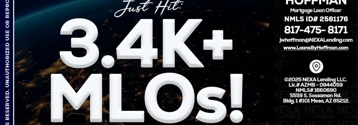 3.4K MLOs - Jeremy Hoffman -Mortgage Loan OfficerHi, my name is Jeremy Hoffman. I’m a Loan Officer with NEXA Mortgage LLC., offering personalized mortgage solutions, fast customized quotes, great rates and service with integrity.