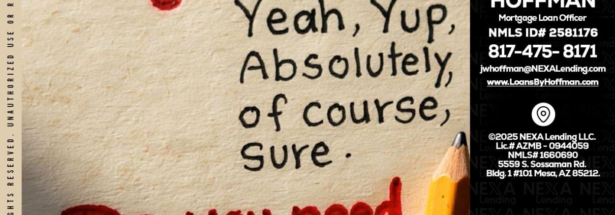 Hi, my name is Jeremy Hoffman. I’m a Loan Officer with NEXA Lending LLC., offering personalized mortgage solutions, fast customized quotes, great rates and service with integrity.