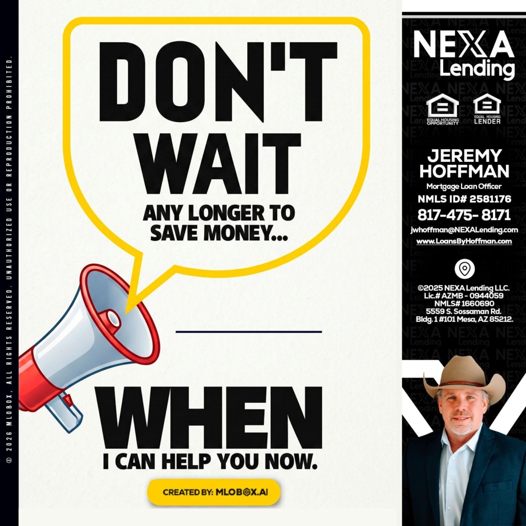 Hi, my name is Jeremy Hoffman. I’m a Loan Officer with NEXA Lending LLC., offering personalized mortgage solutions, fast customized quotes, great rates and service with integrity.
