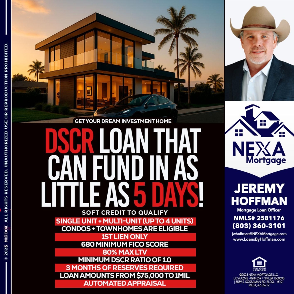 Hi, my name is Jeremy Hoffman. I’m a Loan Officer with NEXA Mortgage LLC., offering personalized mortgage solutions, fast customized quotes, great rates and service with integrity.