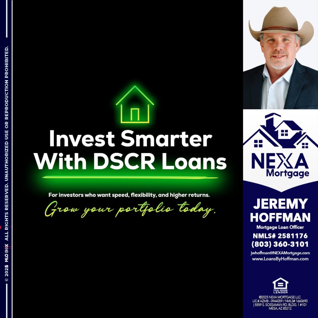 invest smarter - Jeremy Hoffman -Mortgage Loan OfficerHi, my name is Jeremy Hoffman. I’m a Loan Officer with NEXA Mortgage LLC., offering personalized mortgage solutions, fast customized quotes, great rates and service with integrity.