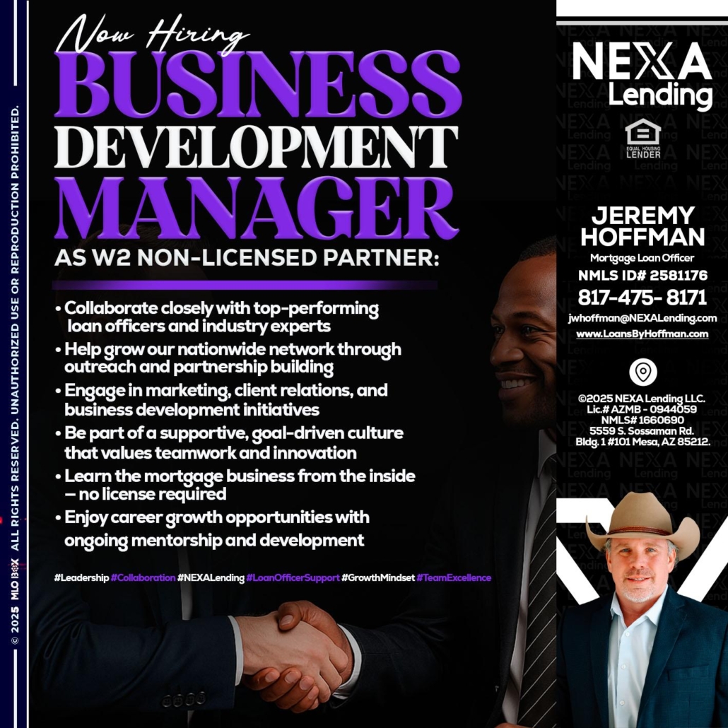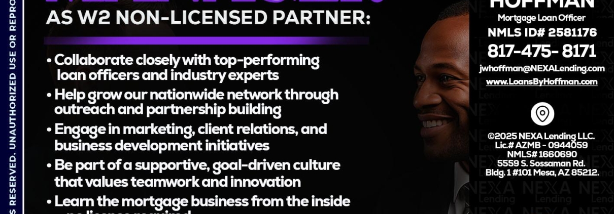 Hi, my name is Jeremy Hoffman. I’m a Loan Officer with NEXA Mortgage LLC., offering personalized mortgage solutions, fast customized quotes, great rates and service with integrity.