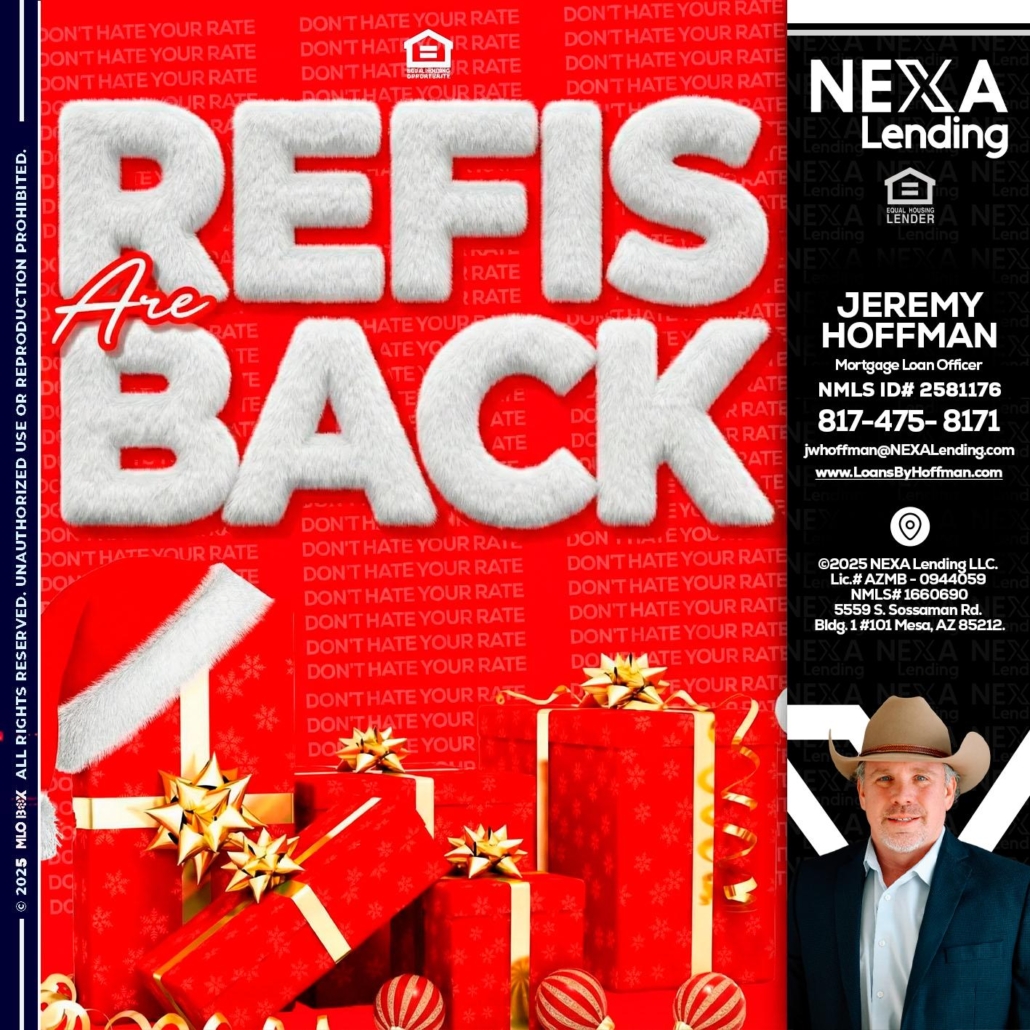refis are back - Jeremy Hoffman -Mortgage Loan OfficerHi, my name is Jeremy Hoffman. I’m a Loan Officer with NEXA Lending LLC., offering personalized mortgage solutions, fast customized quotes, great rates and service with integrity.