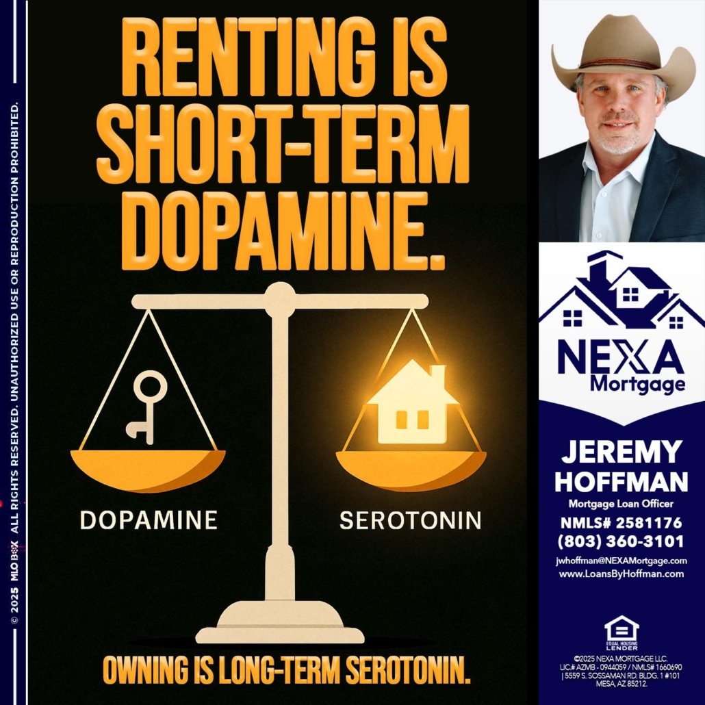 RENTING IS SHORT TERM - Jeremy Hoffman -Mortgage Loan OfficerHi, my name is Jeremy Hoffman. I’m a Loan Officer with NEXA Mortgage LLC., offering personalized mortgage solutions, fast customized quotes, great rates and service with integrity.