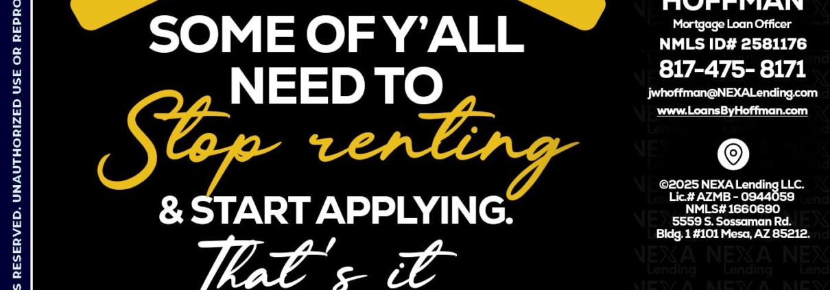 some of you - Jeremy Hoffman -Mortgage Loan OfficerHi, my name is Jeremy Hoffman. I’m a Loan Officer with NEXA Mortgage LLC., offering personalized mortgage solutions, fast customized quotes, great rates and service with integrity.