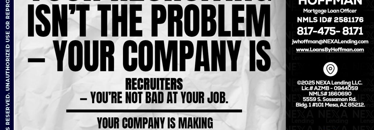 YOUR RECRUITING - Jeremy Hoffman -Mortgage Loan OfficerHi, my name is Jeremy Hoffman. I’m a Loan Officer with NEXA Mortgage LLC., offering personalized mortgage solutions, fast customized quotes, great rates and service with integrity.